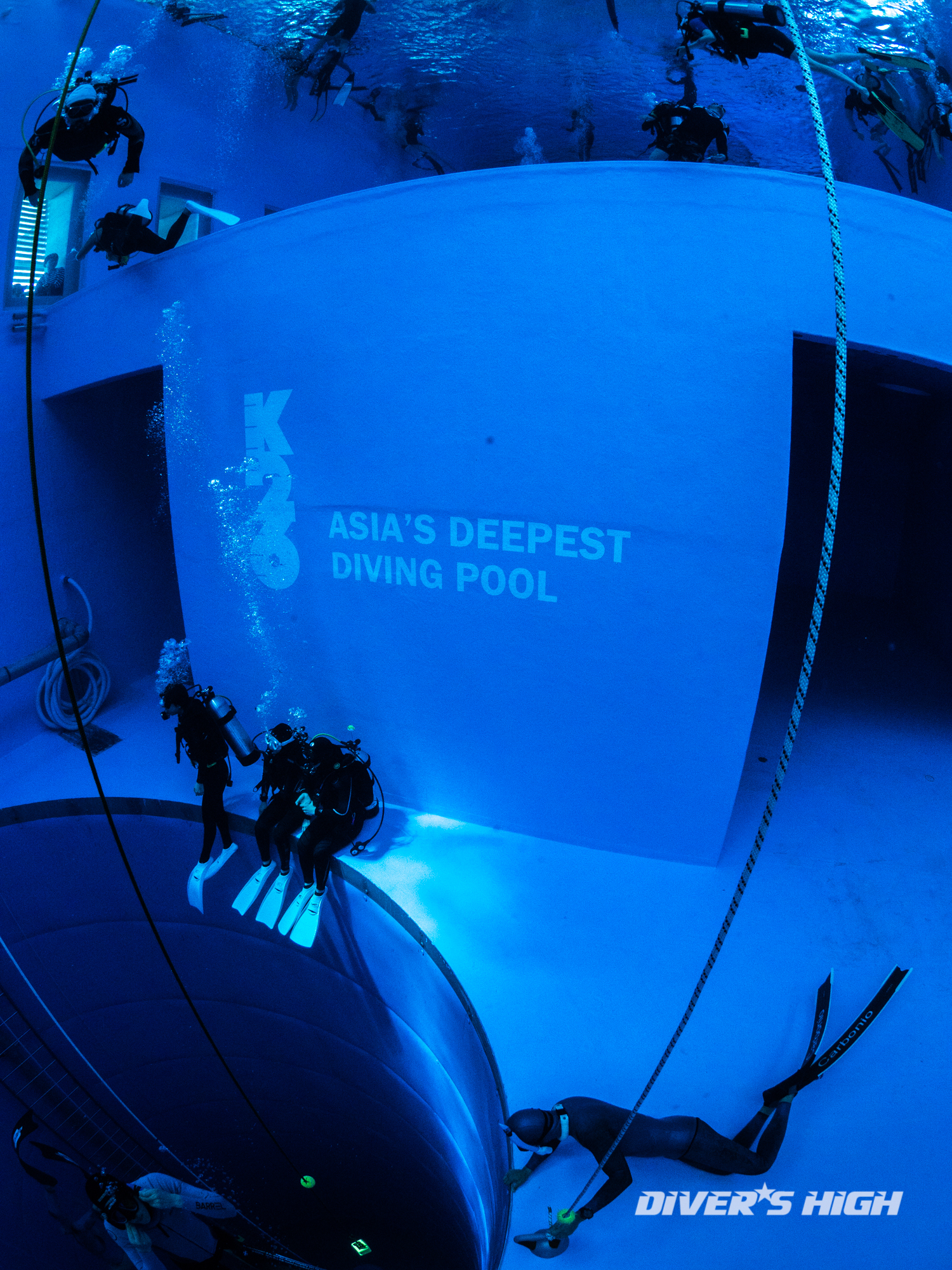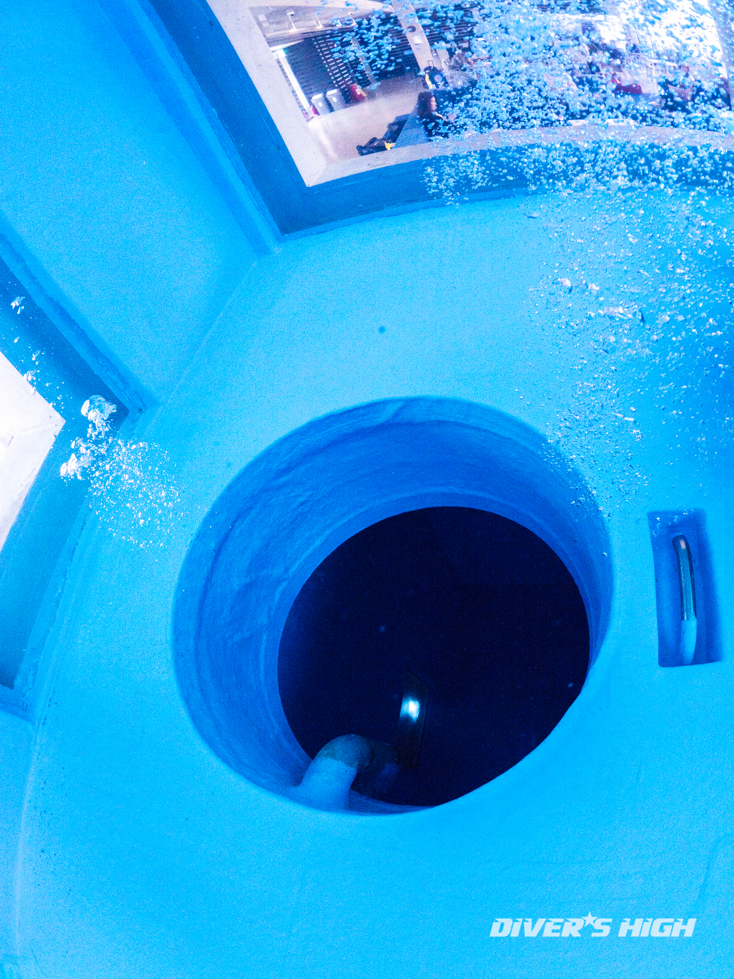 깊은 수심의 26미터 풀로 내려갑니다.
